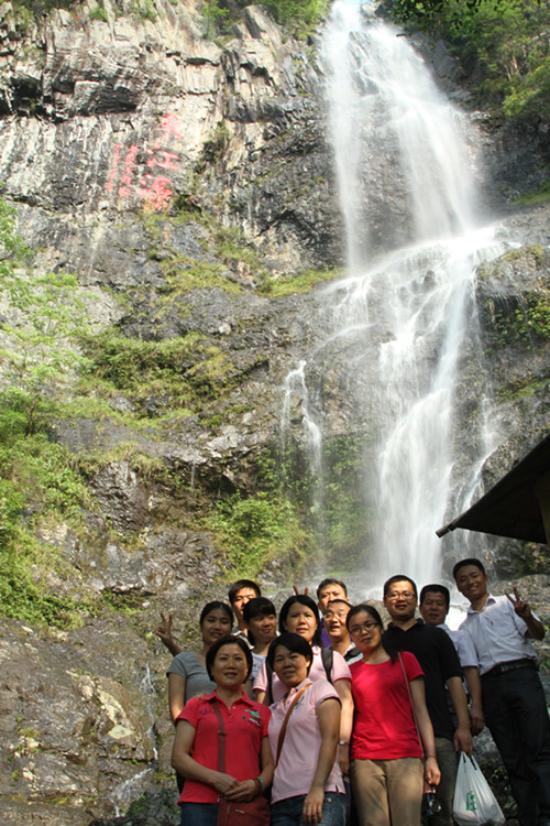 在遠(yuǎn)安縣參觀三百山國家森林公園景區(qū)里的福鰲塘。青山環(huán)抱綠水,綠水映襯青山,一幅和諧的景象。幾度周轉(zhuǎn)之后,我們終于來到了“東江第一瀑”之稱的-東江瀑布。一股感恩大自然,感恩祖國,對香港同胞飲用水關(guān)心的感覺油然而生。