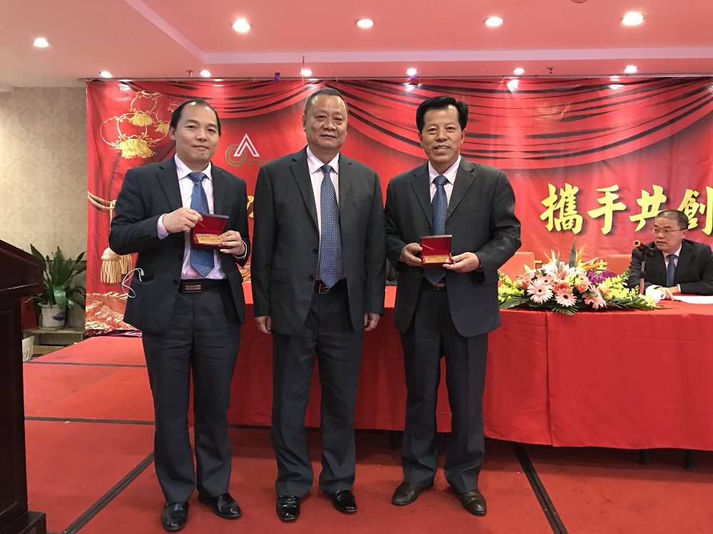 3、張總代表公司領導班子給20年老員工(何國兵總經(jīng)理助理和羅韶坤主任)頒發(fā)“二十年長期服務獎”金牌,表彰老員工20年以來對公司的付出,鼓勵公司所有員工再接再厲。