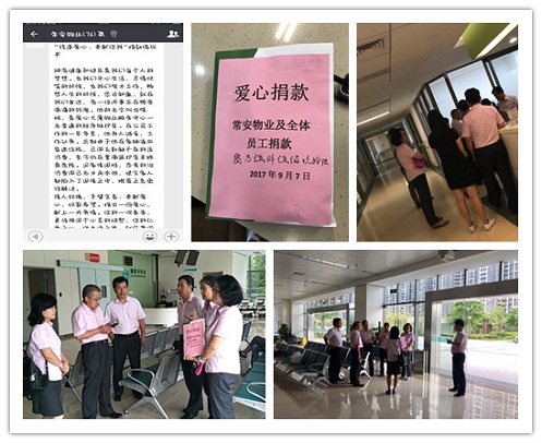 公司接到家屬消息后,非常關(guān)心,當(dāng)即安排人員及工會(huì)主席前往醫(yī)院探望并送上公司的關(guān)懷及5000元的慰問(wèn)金。隨即在公司內(nèi)部及時(shí)組織全體員工發(fā)起了為龍曉明“傳遞愛(ài)心,奉獻(xiàn)你我”的捐款活動(dòng),公司上下反應(yīng)迅速,踴躍捐助。截止2017年9月6日,常安物業(yè)公司及全體員工共為龍曉明籌募善款35596元。2017年9月7日上午,公司領(lǐng)導(dǎo)班子等一行人前往醫(yī)院探視,將捐款送至龍曉明的家屬手中。公司領(lǐng)導(dǎo)向家屬表達(dá)了對(duì)龍曉明及家屬的關(guān)心和慰問(wèn),并鼓勵(lì)家屬積極面對(duì)認(rèn)真治療,也祝愿龍曉明能夠戰(zhàn)勝病魔,早日康復(fù)。公司工會(huì)會(huì)協(xié)助家屬通過(guò)向政府部門申請(qǐng)等形式,爭(zhēng)取獲得更多的社會(huì)扶助資金,從而減輕龍曉明家庭的經(jīng)濟(jì)負(fù)擔(dān)。