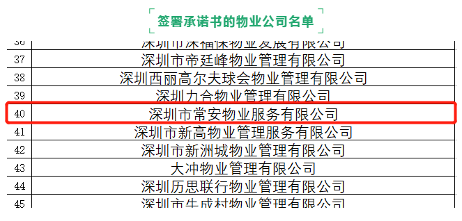 2020年9月17日,深圳市消委會(huì)、深圳市住房和建設(shè)局、深圳市物業(yè)管理行業(yè)協(xié)會(huì)召開深圳市物業(yè)服務(wù)行業(yè)監(jiān)督暨自律公約新聞發(fā)布會(huì),發(fā)布了加入《深圳市物業(yè)服務(wù)行業(yè)自律公約》(以下簡(jiǎn)稱《自律公約》)的407家物業(yè)服務(wù)企業(yè)名單,深圳市常安物業(yè)服務(wù)有限公司志愿簽署該公約,成為自律物業(yè)服務(wù)行業(yè)中的一員。
