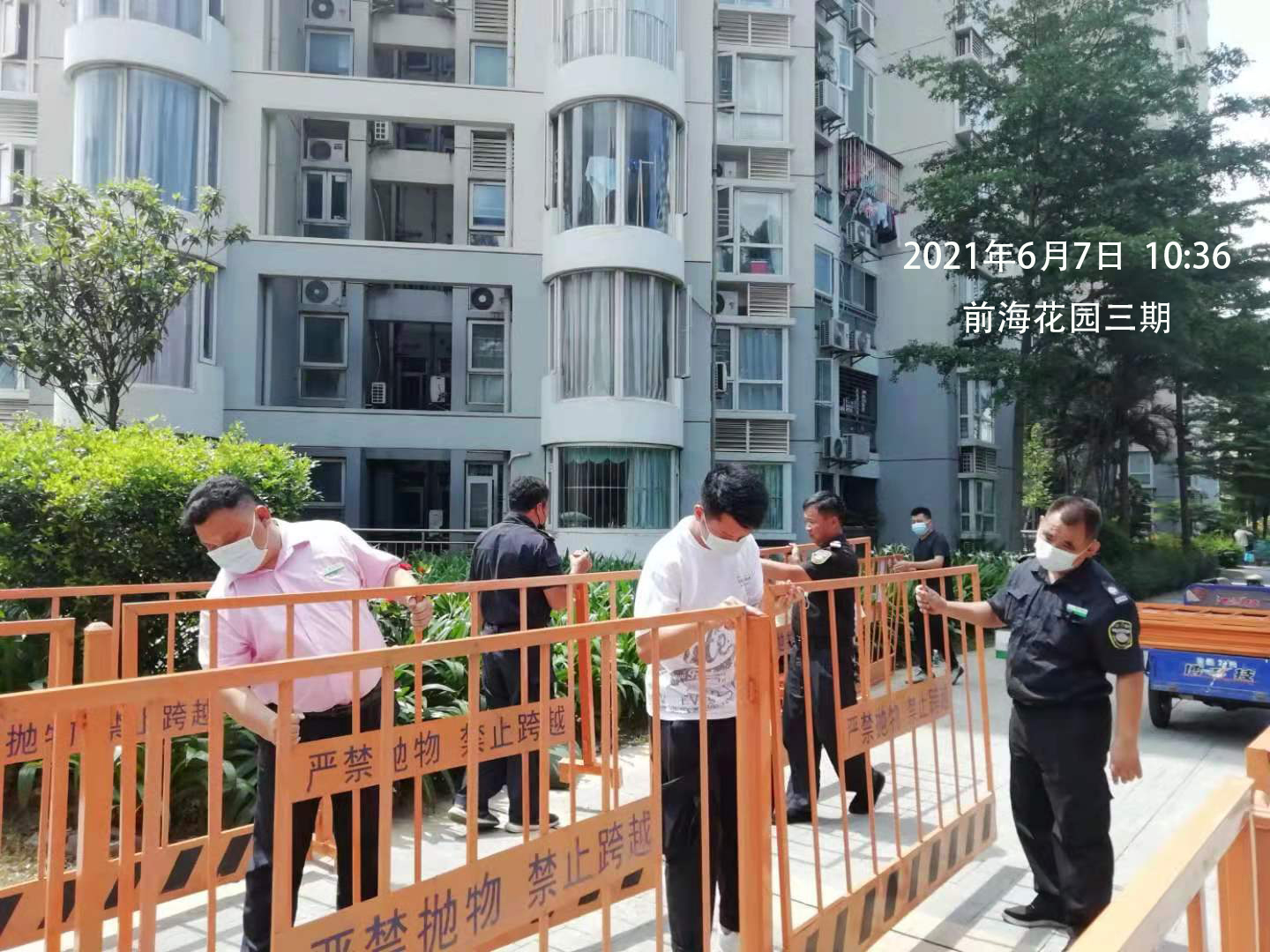 一、緊急協(xié)調(diào),布置圍擋。我司前?;▓@、崇文花園、百旺信高科技工業(yè)園、荔苑小區(qū)等多個服務(wù)中心接獲社區(qū)工作站通知的第一時間,各項目主任首當(dāng)其沖、返回崗位,配合區(qū)防疫部門在小區(qū)/園區(qū)建立圍擋并開展新冠核酸檢測工作,并組織協(xié)調(diào)休假人員加入應(yīng)急布置工作之中。