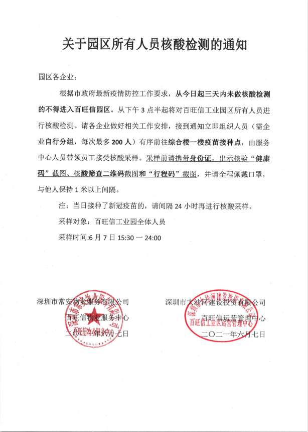 為響應(yīng)我市關(guān)于疫情防控的最新要求,深圳市常安物業(yè)服務(wù)有限公司及下屬各服務(wù)中心全力配合南山區(qū)防疫部門、各轄區(qū)社區(qū)工作站全面覆蓋我司在管項目的核酸檢測工作。